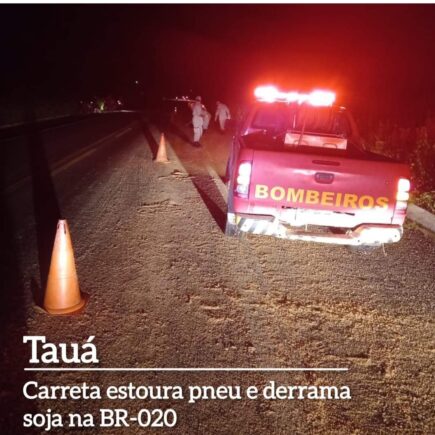 Tauá – Carreta estoura pneu e derrama soja na BR-020