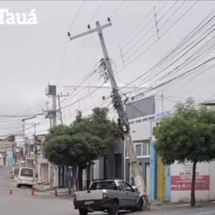 Tauá – Carro colide com poste na Rua Monsenhor Odorico de Andrade