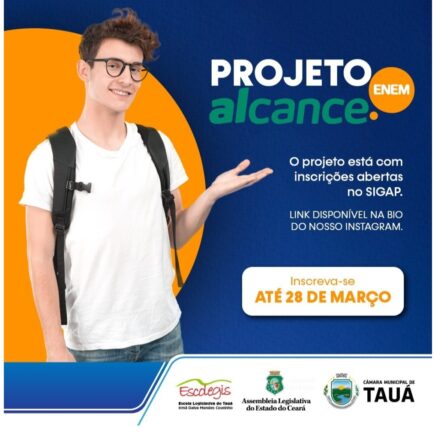A Câmara Municipal de Tauá em parceria com a Assembleia Legislativa do Estado e a Escolegis abriu as inscrições para o Projeto Alcance Enem 2022. As inscrições serão feitas pela internet até o dia 28 de março. Os alunos matriculados terão acesso a diversos cursos de alta qualidade e gratuitos na modalidade EAD. Em caso …