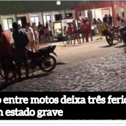 Três pessoas ficaram feridas em um acidente grave ocorrido na noite desta sexta-feira (12) no município de Aiuaba. O fato aconteceu no Bairro Limão próximo ao Clube Forró no Rancho na CE 176. No local duas motocicletas colidiram. Uma delas era pilotada por um jovem identificado como Júnior que conduzia como passageiro outro jovem identificado …