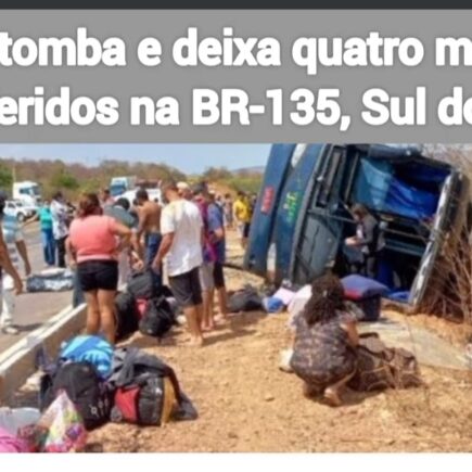 Ônibus tomba e deixa quatro mortos e vários feridos na BR-135, Sul do Piauí