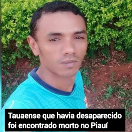 O tauaense Antônio Alberto Rodrigues Batista, 33 anos,que havia desaparecido no município piauiense de Itaueira, depois de sofrer um surto psicótico, foi encontrado sem vida nesta sexta-feira (08). O corpo foi achado numa área de mata da citada cidade. Provavelmente ele tirou a própria vida. Antônio Alberto estava na cidade de Rio Verde de Goiás, …