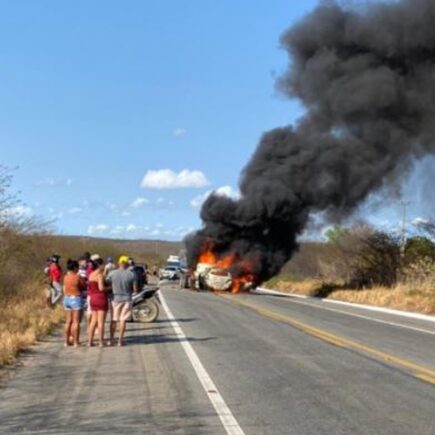 Uma colisão frontal envolvendo um Chevrolet Ônix,. cor prata, prata, placas, PXY 2976-Madalena/CE e uma Mercedes Benz caçamba, cor azul, na BR-020, altura do município de Caridade, provocou as mortes dos 3 ocupantes do automóvel. Segundo a Polícia Rodoviária Federal (PRF), a batida ocorreu no quilômetro 357 e causou um incêndio nos veículos, deixando os ocupantes do carro …