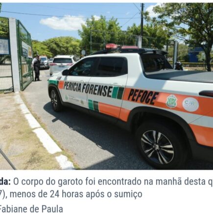 A Universidade Estadual do Ceará (UECE) confirmou, por meio de nota de pesar publicada em seu site, que o corpo do menino encontrado por mergulhadores do Corpo de Bombeiros, na manhã desta quinta-feira (7), é de Heitor Viana Kobayashi Silva. A criança de 9 anos se perdeu na universidade na quarta-feira (6) e estava desaparecida desde então. É com profunda tristeza …
