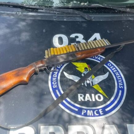 Policiais do Raio de Parambu, apreenderam nesta quinta-feira (15) em um bar da localidade de Serra Nova, na zona rural do município, uma espingarda calibre 20 e uma escola com 14 munições intactas e uma deflagrada calibre 20, duas munições calibre 32 deflagradas, uma munição calibre 36 deflagrada, 47 espoletas e uma armadilha pra tatu. …