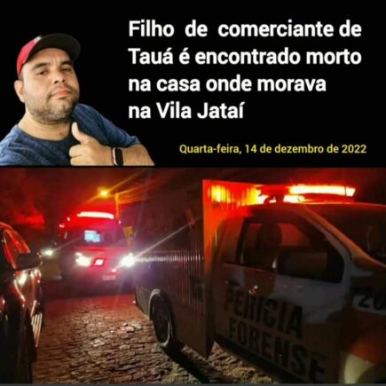 Um homem de 38 anos, identificado como Pedro Pascoal de Oliveira Júnior, conhecido popularmente como ‘Júnior Bill’, foi encontrado morto no início da noite desta quarta-feira (14) no interior do imóvel onde morava na Vila Jataí em Tauá. Júnior era filho único do casal de comerciantes Pedro Pascoal e Deusinha, cujo estabelecimento comercial fica situado …