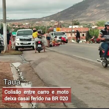Um casal ficou ferido em um acidente envolvendo um carro e uma motocicleta no início da manhã do sábado (05) na BR 020, em Tauá. O acidente aconteceu em frente ao Hotel Maria Bastos e teve como vítimas os ocupantes da motocicleta que era pilotada por Gonçalo Raimundo Pereira Filho, 39 anos, natural de Uruoca-CE, …