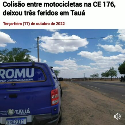 O acidente ocorreu próximo ao Centro Gerencial do DNOCS na saída de Tauá para Arneiroz. No trecho citado uma motocicleta CB 300 com placa de Santa Bárbara do Pará, colidiu com uma Biz, de cor preta, placa de Pedra Branca-CE. A CB 300 era guiada por Marcelo da Silva Freitas, 26 anos, que tinha como …