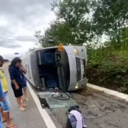 Tauá – Ônibus tomba na BR 020 e deixa alunos feridos